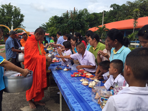 ผู้บริหารคณะครูนักเรียนผู้ปกครอง ร่วมกิจกรรมตักบาตรวันแม่เเห่งชาติ |