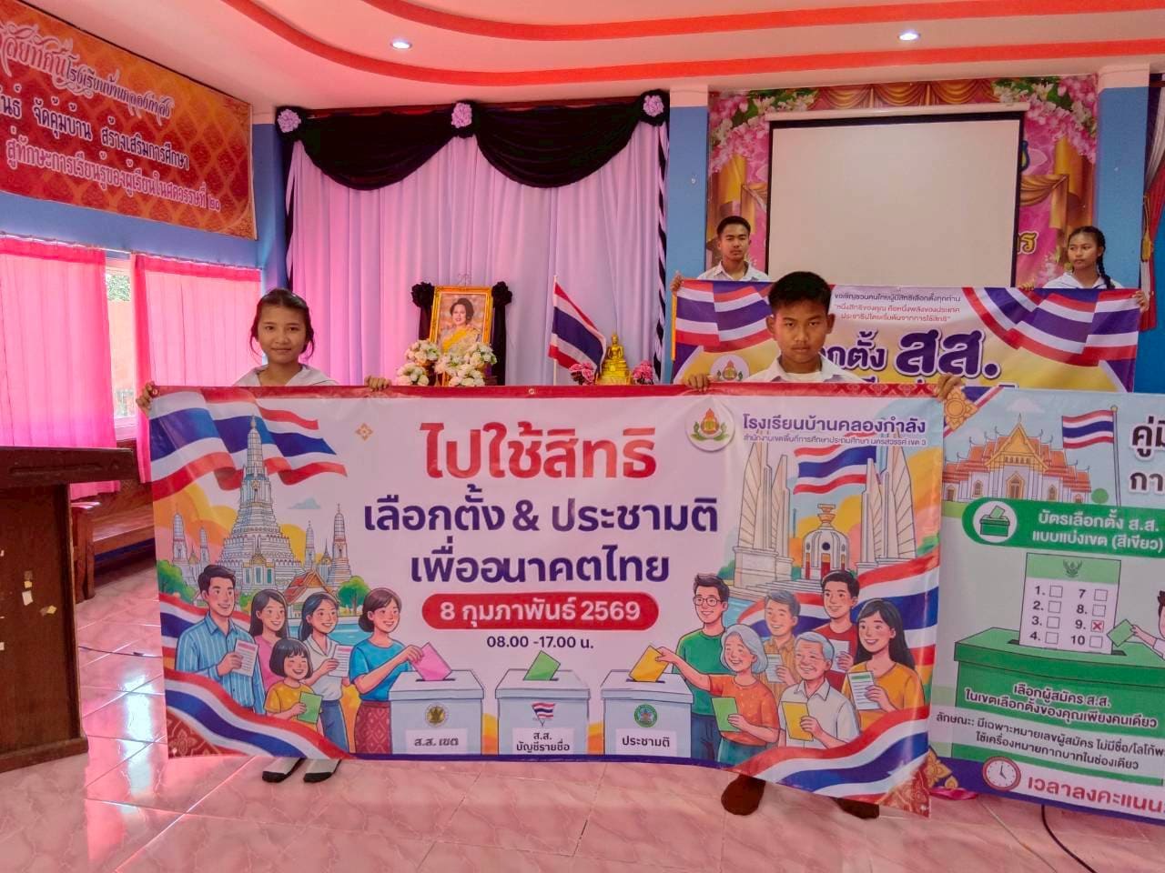 วันศุกร์ที่ 6 กุมภาพันธ์ 2569 นำโดยสภานักเรียนโรงเรียนบ้านคลองกำลัง ร่วมเดินขบวนรณรงค์ให้ผู้มีสิทธิเลือกตั้ง ไปใช้สิทธิเลือกสส. และออกเสียงประชามติ ในวันอาทิตย์ที่ 8 กุมภาพันธ์ 2569