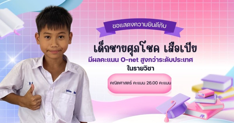 ขอแสดงความยินดีกับนักเรียนชั้น ป.6 ที่มีผลคะแนน O-net สูงกว่าระดับประเทศในแต่ละรายวิชา เพราะทุกความพยายามคู่ควรต่อการชื่นชม